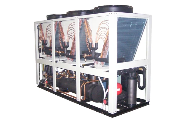 Scroll-type air-cooled heat pump unit adopts high-efficiency fully closed scroll compressor, self-developed and manufactured high-efficiency shell-and-tube heat exchanger and coil heat exchanger, using R22, R134a, R407c refrigerant